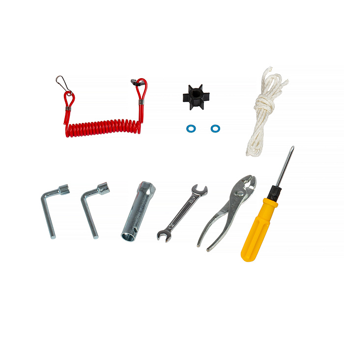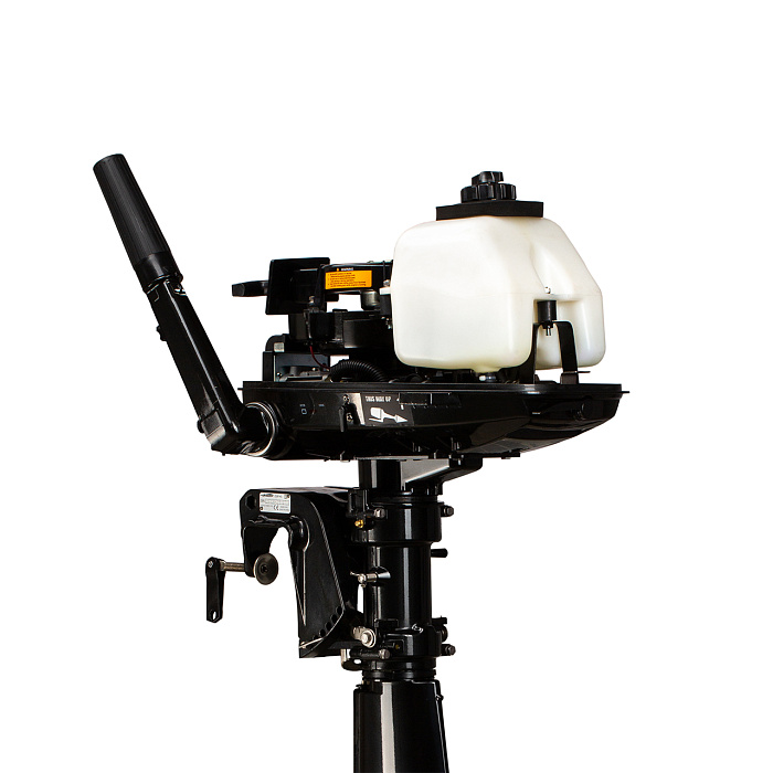 Мотор запускается ручным стартером, а управляется стандартным румпелем с поворотной ручкой газа (гашеткой мотоциклетного типа) с антипроскальзывающими насечками.
